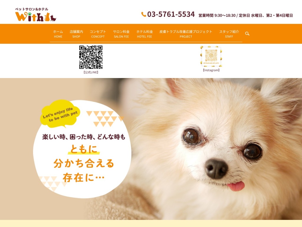 | ペットサロン&ホテルWith | 〒201-0003 東京都狛江市和泉本町2丁目34−18 1F http://www.with-petlife.com |